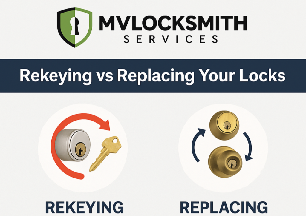 Rekeying vs Replacing Your Locks: What’s the Best Choice? If you’ve recently moved, lost your keys, or had a security scare, you’ve probably wondered: “Should I rekey my locks or replace them altogether?” It’s a common question—and an important one. At MVLocksmith Services, we help customers make this decision every day. Here’s a simple breakdown […]